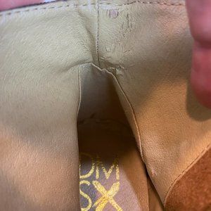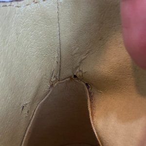 Suede has water marks on toe area. Suede is roughed up throughout. Interior lining is cracking/peeling on the back.
