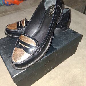 Donald J Pliner DMSX Yev Penny Loafer Black & Gold Women's 8.5M