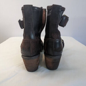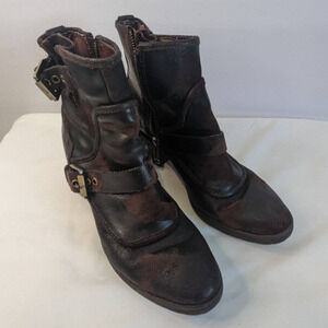 Donald J Pliner Delta Moto Boots Espresso Brown 6.5 Distressed Ankle Buckles