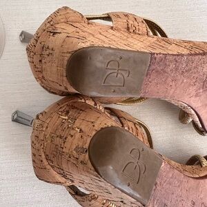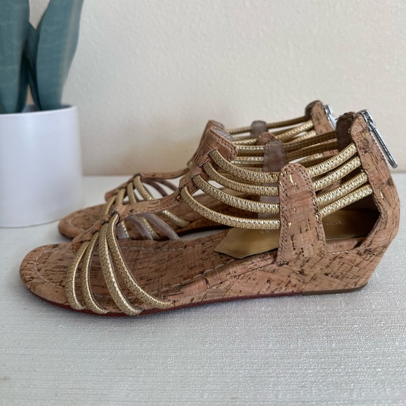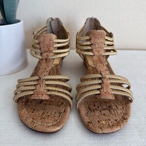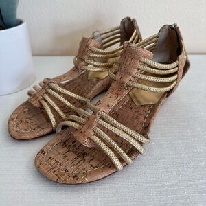 Donald J. Pliner Dexi Gold Cork Strappy Rear Zip Wedge Sandals Women’s 8M
