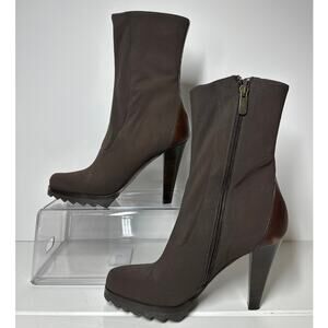 Donald J. Pliner Dona Microfiber Ankle Boots High Heel Stretchy Size 8 Brown