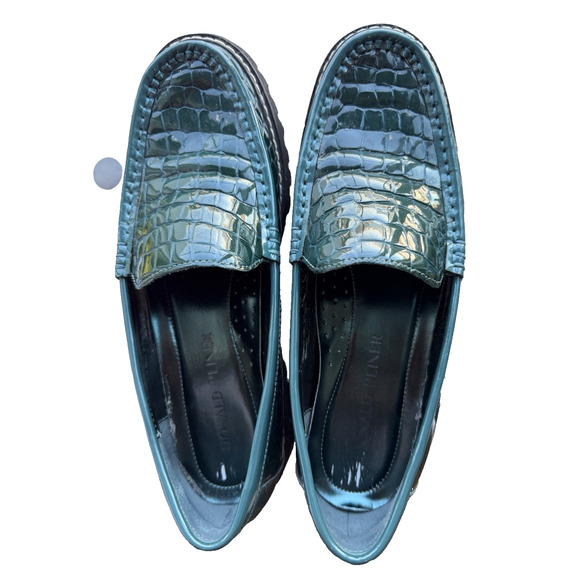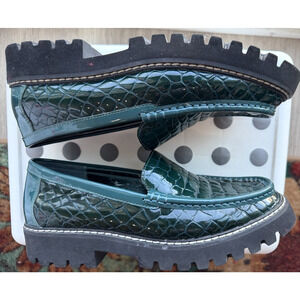 Donald J Pliner Emerald green Women’s Croc embossed Leather Comfy Loafers Size 8