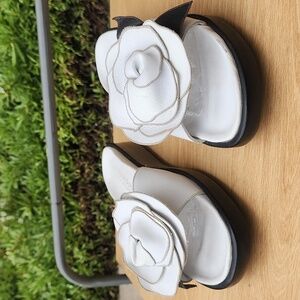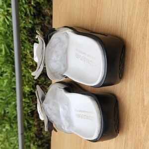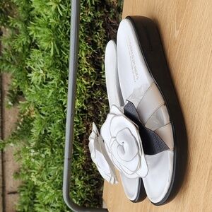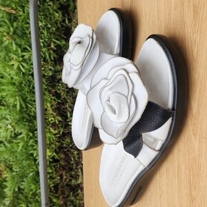 Donald J Pliner French Cactus/White Black Leather Floral Slip-on Sandals Size 9