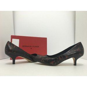 Donald J Pliner Gali Printed Pointed Toe Heel Pump Black Patent Leather US 8