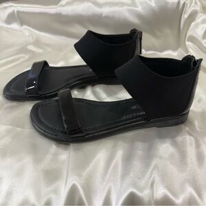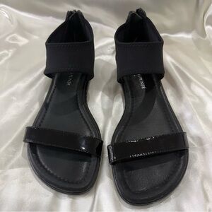 Donald J Pliner Gelda Sandals Neoprene Ankle Patent Leather Black Size 6 Chic