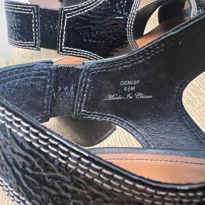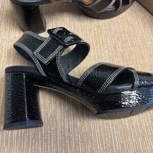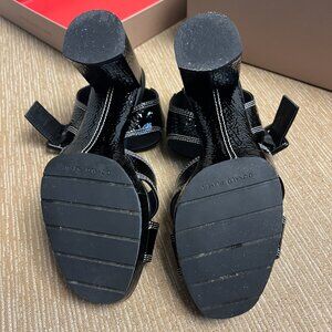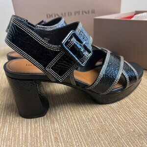 Donald J. Pliner Geni Crinkle Patent Heeled Sandal Black 6.5
