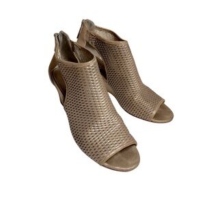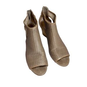 Donald J. Pliner Genuine Leather Gold Beige Wedge Heels Sandals Boots 7.5