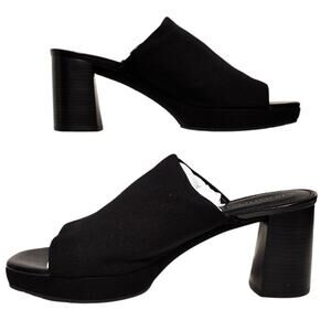 Donald J. Pliner Georgetted Slip On Open Toe Mules Block Heels Black Womens 10