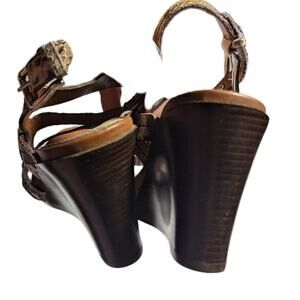 Donald J Pliner Gilda Beige Snakeskin Textured Leather Strappy Wedge Sandals 7
