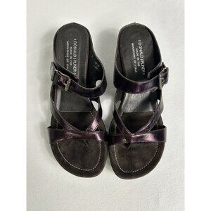Donald J Pliner Gin Metallic Slip On Wedge Sandals in Vino - Sz 9.5