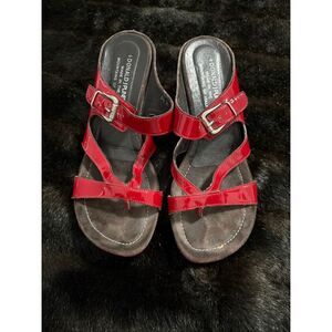 Donald J Pliner Gin patent leather red Slip On Wedge Sandals - Sz 8.5