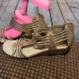 Donald J. Pliner Gladiator style strappy Gold Flat Sandals 6.5 GUC
