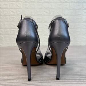 Donald J Pliner Heel Sandals SZ 8.5 Silver Metallic Glitter Peep Toe Ankle Strap