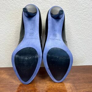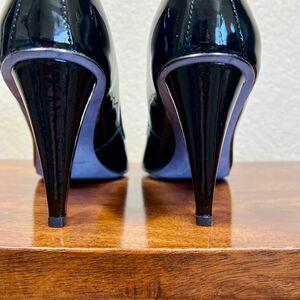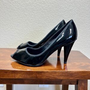 Donald J Pliner Heels Black Patent Leather Slip On Peep Toe Pump Shoe size 9M