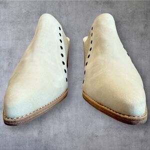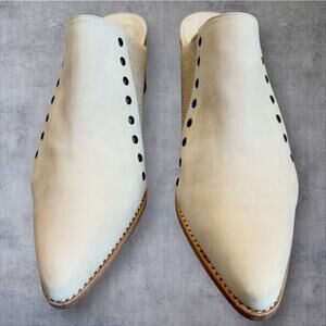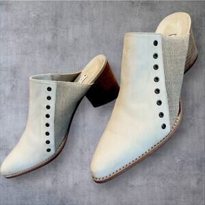 Donald J Pliner Leather Block Heel Mules Western Slides Women Size 7 Beige Spain