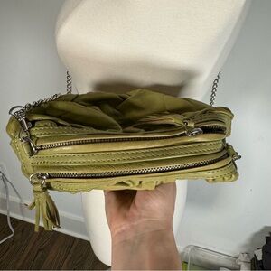 Donald J Pliner Leather Clutch Crossbody Pouch Bag Chain Strap