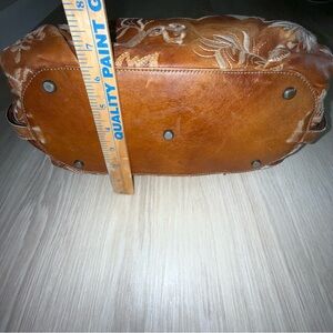 Gorgeous, unique, vintage vibes, hobo bag, brown leather with beautiful floral embroidery orange lining with one inside zip pocket three open pockets, one leather with embroidery matching exterior of bag. This purse is used with some scuffs on the bottom could be reconditioned. One side of strap rivets appear to not beall the way through bag pictured motivated seller offers welcome.