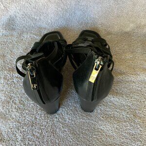 Donald J Pliner Lia Black Leather Elastic Strappy Wedge Sandals Size 7.5M