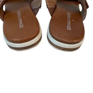 Donald J Pliner Libra Cow Hide Sandals Wide Strap Leather Flats Brown 8
