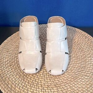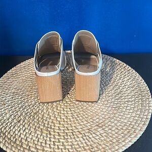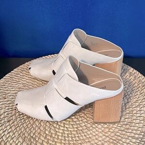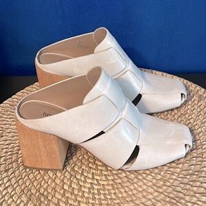 Donald J Pliner Lilia Mule Off-White Leather Chunky Wood Block Heel Mules 6