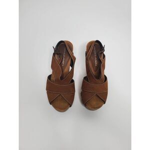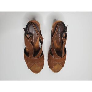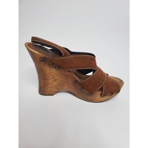 Donald J Pliner Lusa Strappy Suede Wooden Clog Platform Heels Leather Rivets Y2K