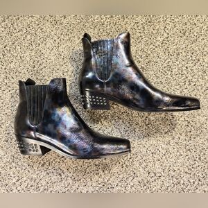 Donald J Pliner Milann Studded Booties in Black Leather Iridescent Sz 9.5 M