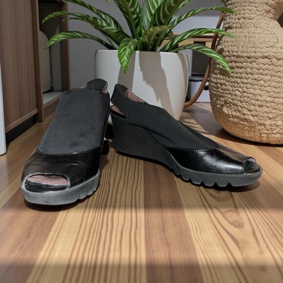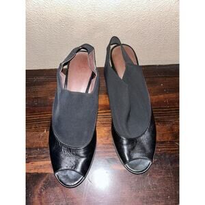 Donald J Pliner Mynne Black Leather Slingback Wedge Sandals Womens 8.5 Preppy
