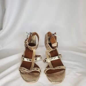 Donald J Pliner NWOT Mali-V2 peep toe Metallic Brush Off Grommet Heels sz 7M