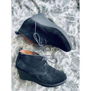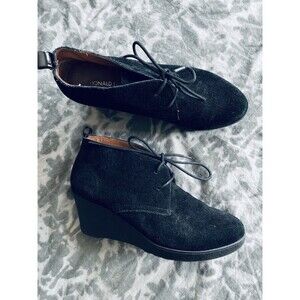 Donald J. Pliner Nakka Wedge Bootie 8 Suede Leather Black Lace-Up Ankle