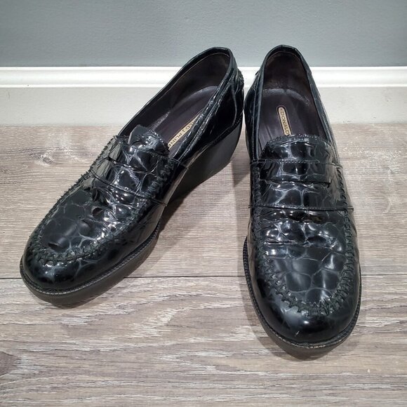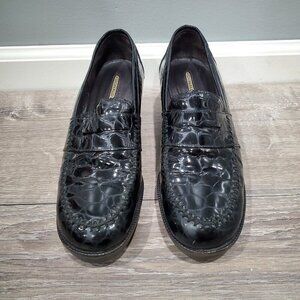Donald J Pliner Nia2 Black Patent Leather Crocodile Print Wedge Loafer Shoe 8.5M