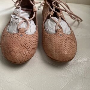 Donald J. Pliner Paix Tan Lace-Up Flats with Textured Leather