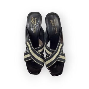Donald J. Pliner Patent Leather Wedge Sandals | Black, Size 10
