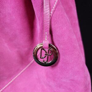 👜 Donald J Pliner Pink Faux Suede Drawstring Shoulder Bag