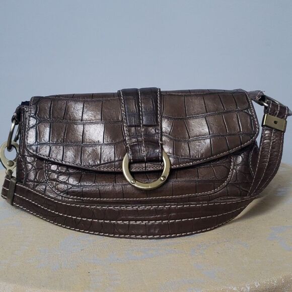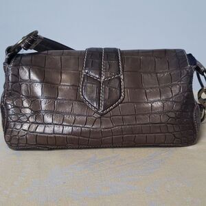 Donald J. Pliner Purse Bronze Metallic Croc Embossed East West Shoulder Bag