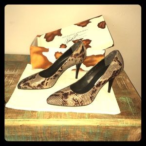 These Donald J Pliner heels are an absolute dream and are in mint condition. With original dust bag, box and sole inserts, these beauties were originally $285, but can be yours for a fraction! In python-print patent leather, these 3.5" show-stoppers will not disappoint...