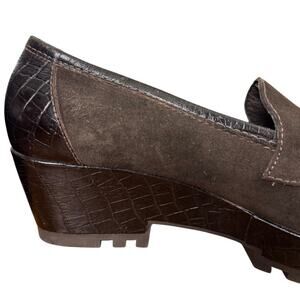 Donald J Pliner Riza Womens Brown Wedge Suede Leather Slip On Shoes Loafers 8.5