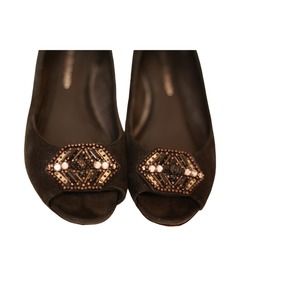 Donald J. Pliner SONET Beaded Black Suede Peep Toe Flats Size 7.5