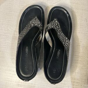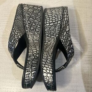 Donald J Pliner Sandals Shaheen Wedge Heels Slip on Thong Silver Size 8