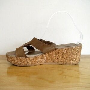 Donald J Pliner Shelee Wedge Sandal Tan Leather Slip On Shoe Sz 10