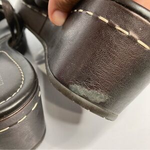 Has a small scuff/scratch on the side of one heel. Please see additional pictures.