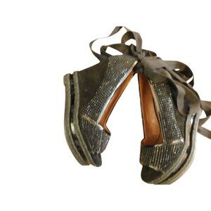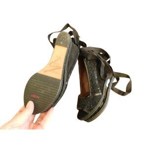 Donald J. Pliner Size 6.5 M Designer Wedge Bling Ankle Tie Wrap Heels Shoes
