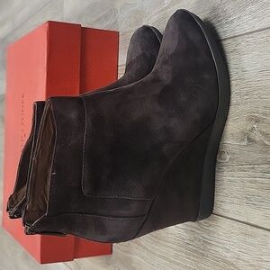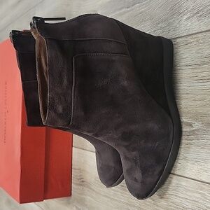 Donald J Pliner Size 7 1/2 Chez Brown Suede Wedge Booties