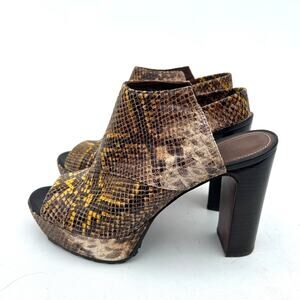 Donald J Pliner Snakeskin Open Toe Slingback High Heels Chunky Booties 9.5