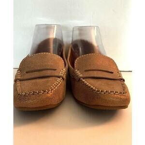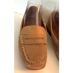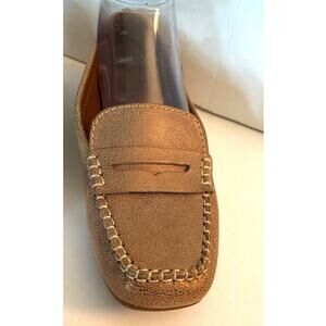 Donald J Pliner Sz 6M Tan Gold Metallic Brushed Off Leather Upper Penny Loafer