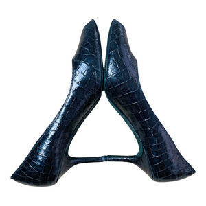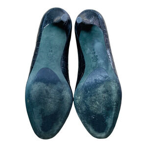 Donald J Pliner Sz 9.5 Black Leather Crocodile Skin Pattern Peep Toe Heels