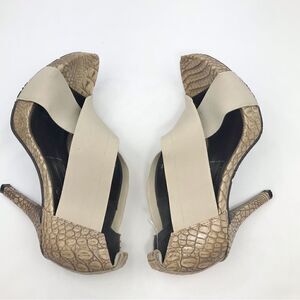 Donald J. Pliner Tan Crisscross Elastic Faux Crocodile Open Toe Heels