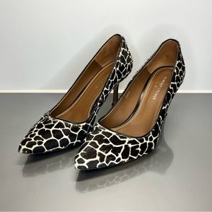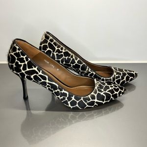 Giraffe print, made of calf hair. 3" heels. Gorgeous, high end pumps!