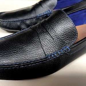 Donald J. Pliner Varran Black Pebbled Leather Loafer/Moc w/ Blue Contrast Stitch