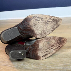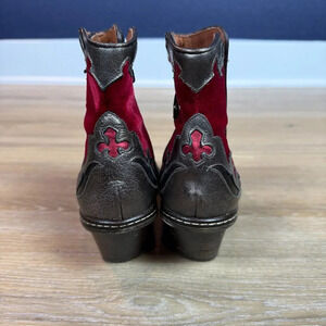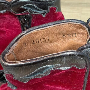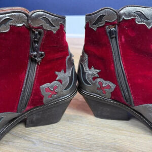 Donald J. Pliner Western Couture Boots, Red Velvet & Pewter Leather, Size 6.5