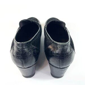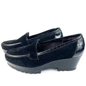 Donald J Pliner Women Black Suede/Crocodile Loafer Wedge Heel Size 6M